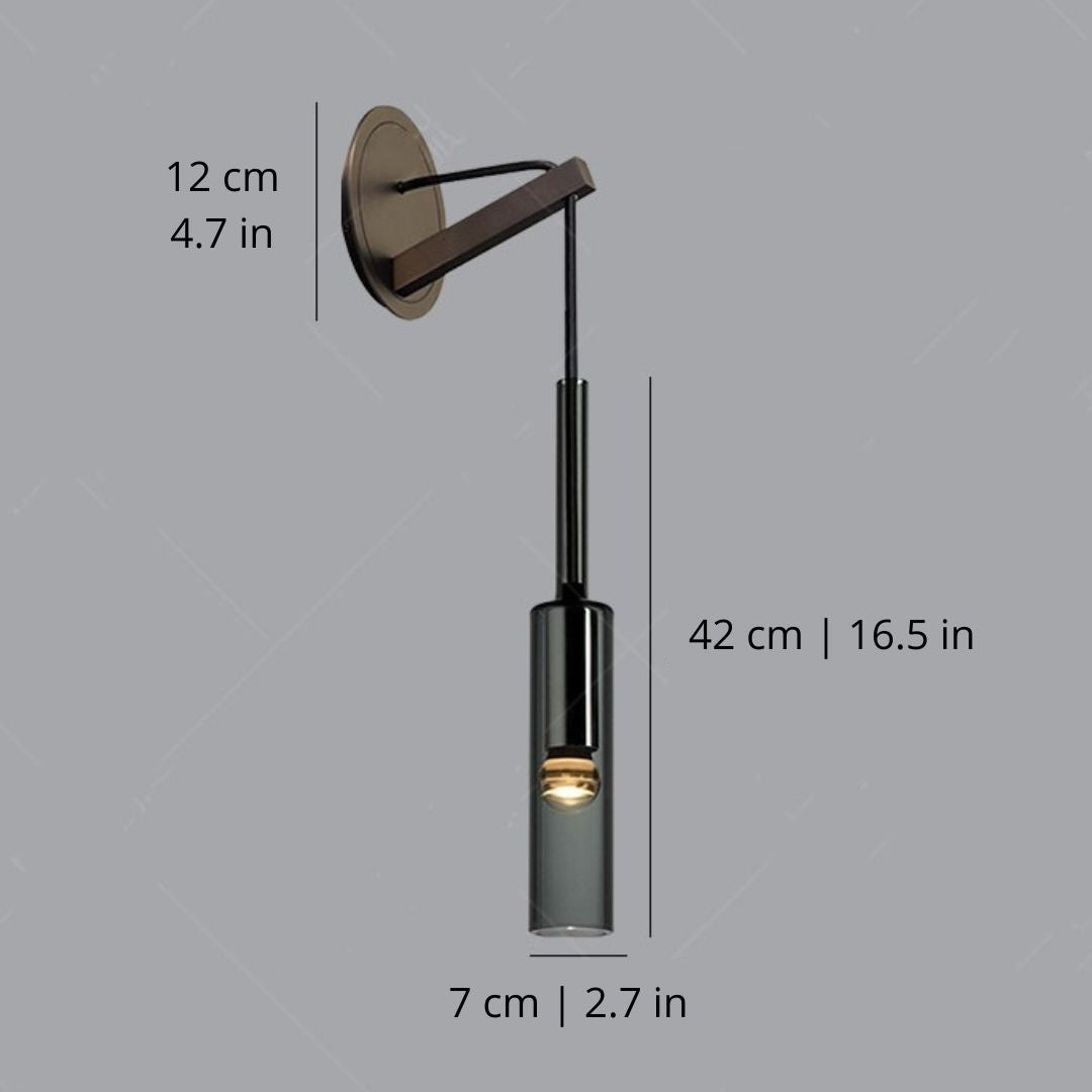 The lamp body measures 42 cm (16.5") height × 7 cm (2.7") width. Ceiling/wall base is 12 cm (4.7") diameter.