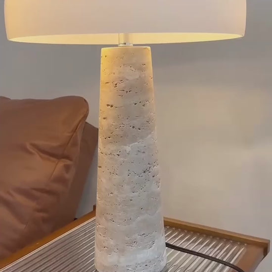 The Kinoko Lamp features a solid stone base and a matte dome shade, bringing together natural texture and timeless design in one sculptural piece.