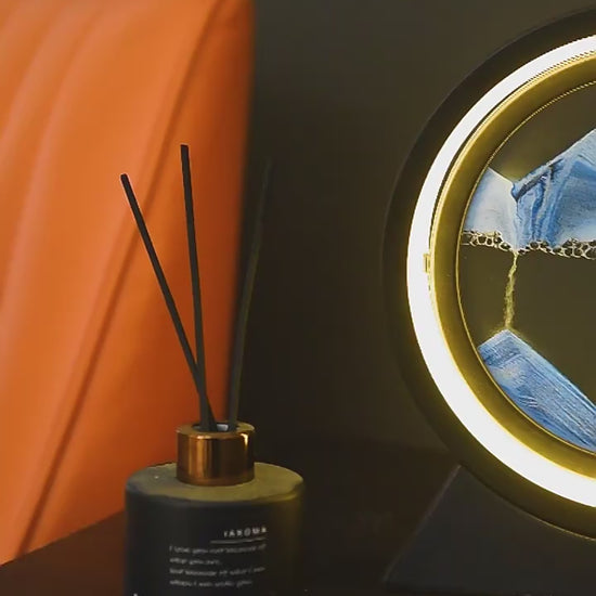 The lamp contains a sealed glass panel with fine quicksand and air bubbles. When flipped, gravity pulls the sand down, forming beautiful dunes in a relaxing, flowing motion.