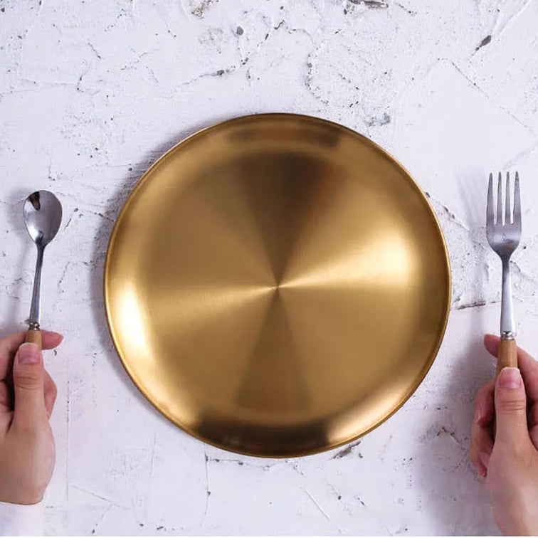 Experience understated luxury with The Golden Dusk Collection — a set of three minimalist gold plates designed to elevate your everyday moments.