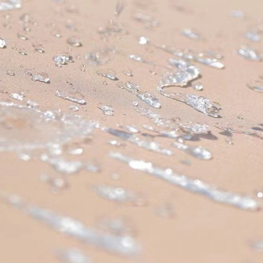 The canopy is made from 210T high-density nylon, which is water-resistant and offers excellent sun protection. It can handle light rain, but for heavy storms, we recommend closing and storing it safely.