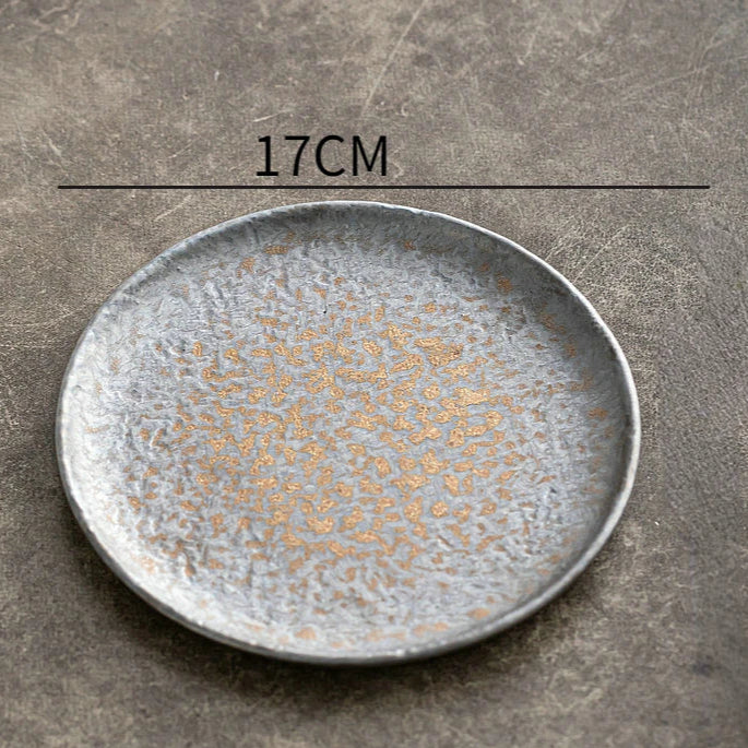 Introducing the Volkan Plate Collection — artisan-crafted ceramic plates with a raw, hammered finish and glints of gold that shimmer like embers from volcanic stone.