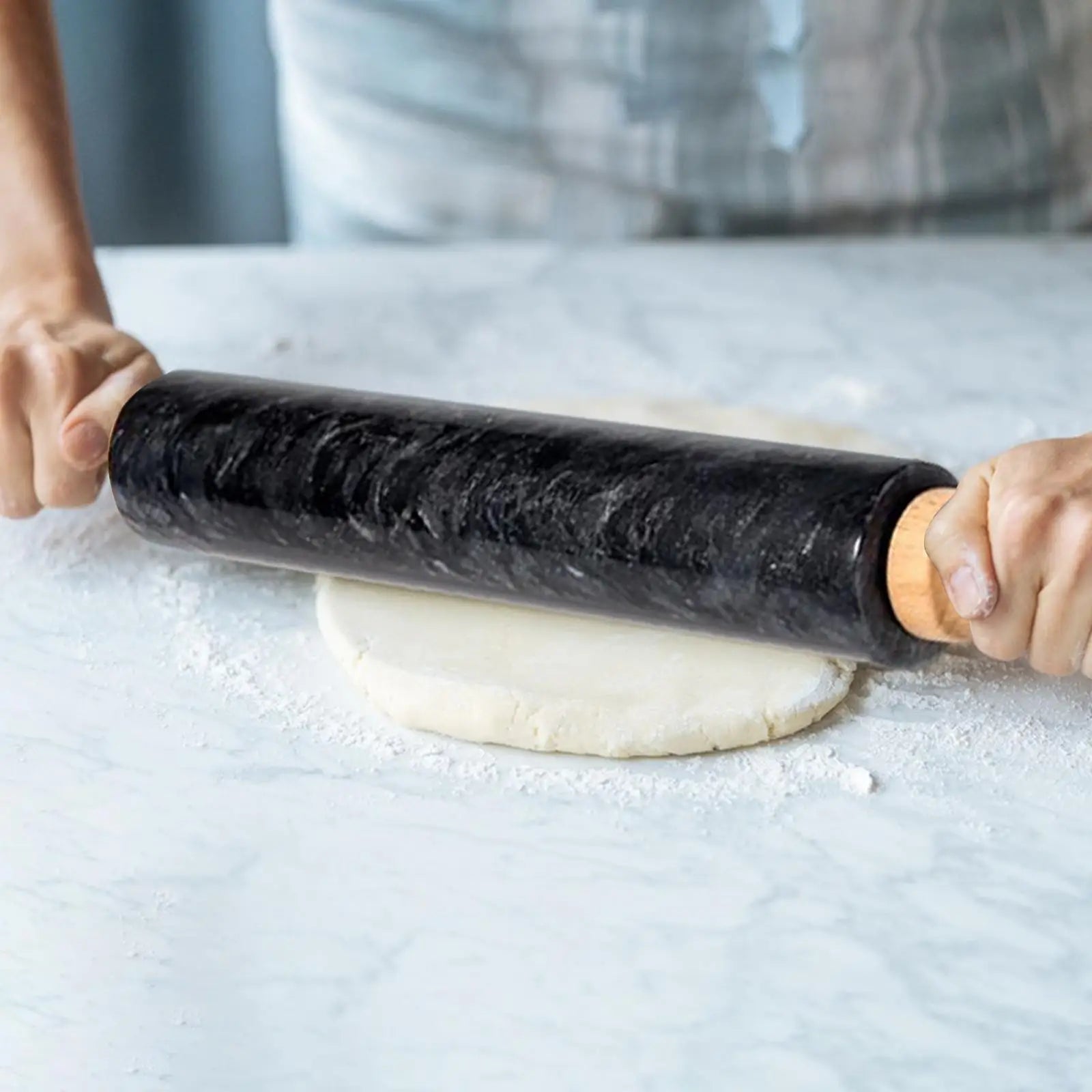 Cool, naturally non-stick, and weighted just right — perfect for rolling out silky-smooth dough with less effort.